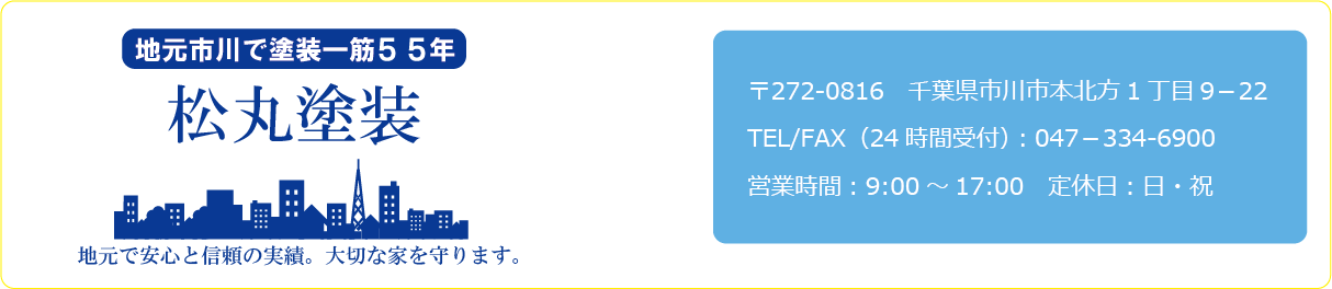私どもは、千葉県市川市で創業55年になり、塗装一筋で仕事をしてまいりました。